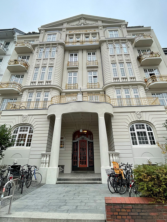 Das St. Johannishaus an der Schäferkampsallee ist ein prägendes Beispiel der Hamburger Gründerzeit. Die reich ornamentierte Stuckfassade verleiht dem denkmalgeschützten Wohnhaus seinen unverwechselbaren historischen Charakter. Im Rahmen einer restauratorischen Außeninstandsetzung führten wir eine Fassadenfarbentfernung, stuckschonende Vorbereitung sowie nachfolgende Restaurations- und Malerarbeiten durch. Ziel war es, die Originalstrukturen freizulegen, Schäden zu beheben und die historische Substanz dauerhaft zu sichern.